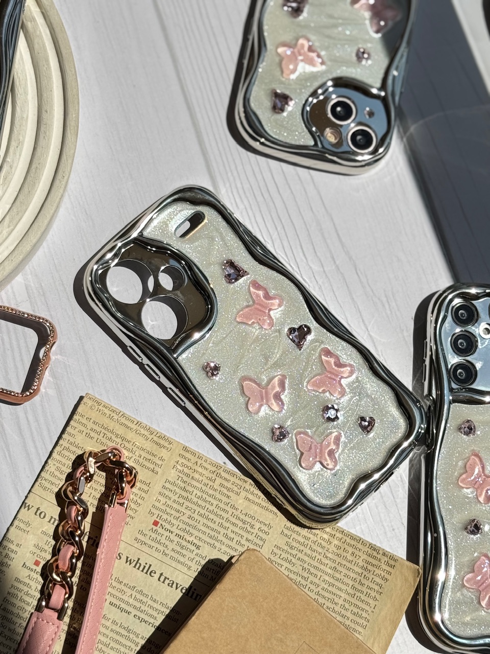 قاب پاپیون صورتی اکلیلی پشت طلق آیفون ، سامسونگ ، شیائومی (کدC1886)