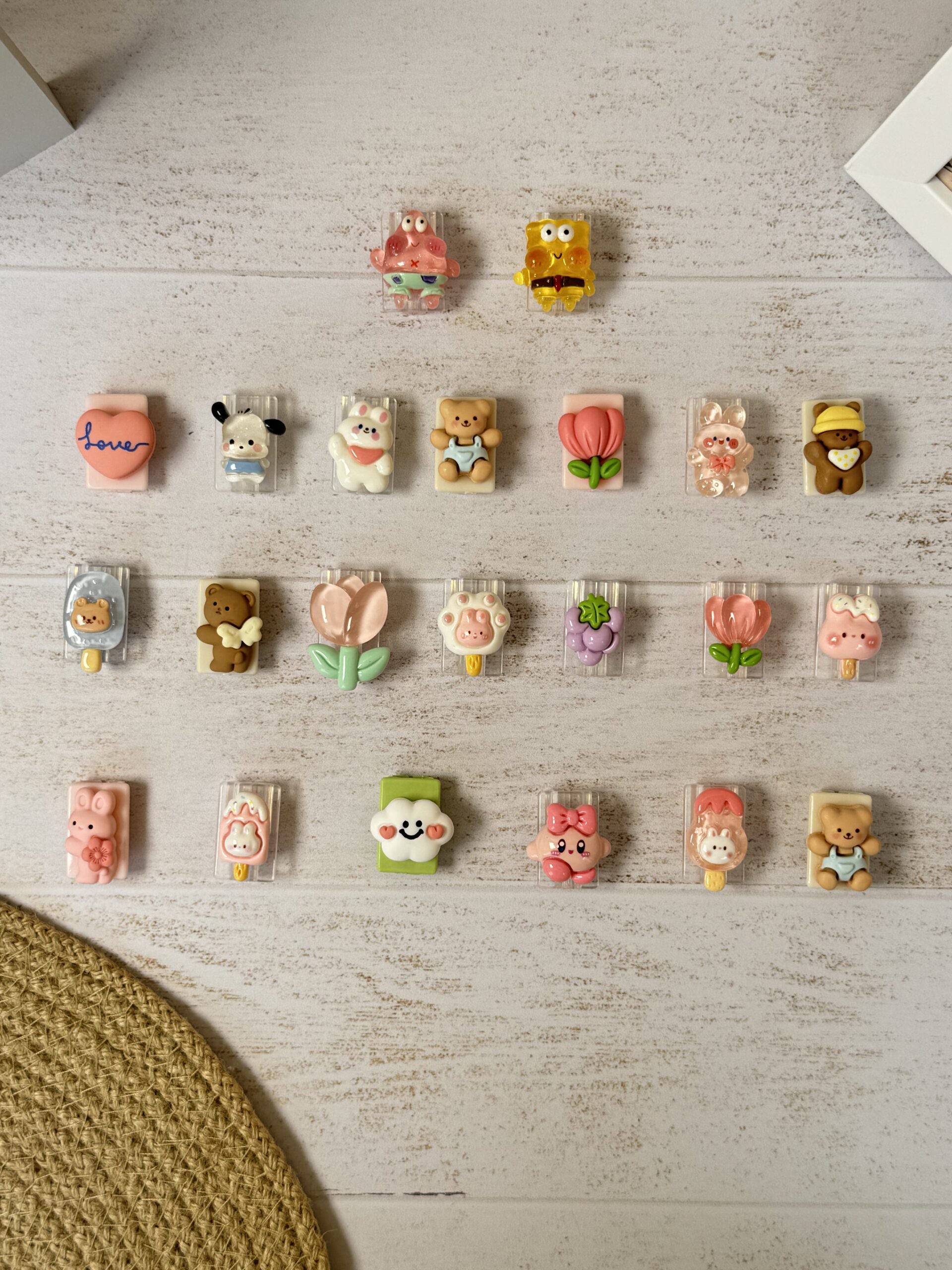 19- ابر ,18-بستنی خرگوش صورتی ,17-خرگوش صورتی گلدار ,10-بستنی چوبی سر خرس ,1-پاتریک شیشه ای ,16- آبنبات خرگوشی صورتی ,15- لاله شیشه ای کوچک ,14-انگور ,13-بستنی پنجه سفید ,12-لاله شیشه ای بزرگ ,11-خرس بالدار ,2- باب شیشه ای ,20-دیجی مون صورتی ,21-بستنی شیشه ای خرگوشی ,3-قلب لاو ,4-سگ شیشه ای ,5- خرگوش سفید ,6- خرس قوه ای سرهمی پوش ,7-لاله مات ,8-خرگوش شیشه ای ,9- خرس قهوه ای کلاه دار |