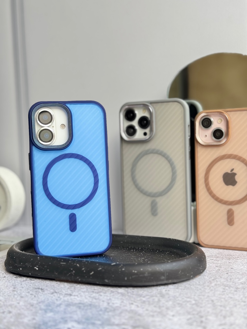 💠لنز کربن شیاردار💠مگ سیف فعال در تمامی مدل ها💠دور لنز و دکمه ها فلزی طرح کربن💠کیفیت اصلی💠مشکی / تیتانیوم / آبی / دیزرت💠دکمه های نرم💠محافظت کامل از گوشی موبایل