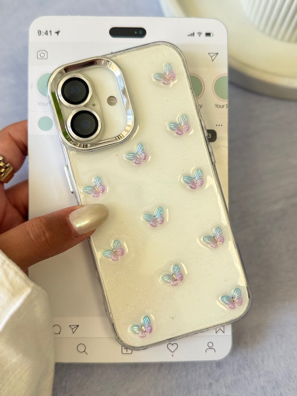 قاب پروانه رنگی زمینه شاینی (کدC2108)