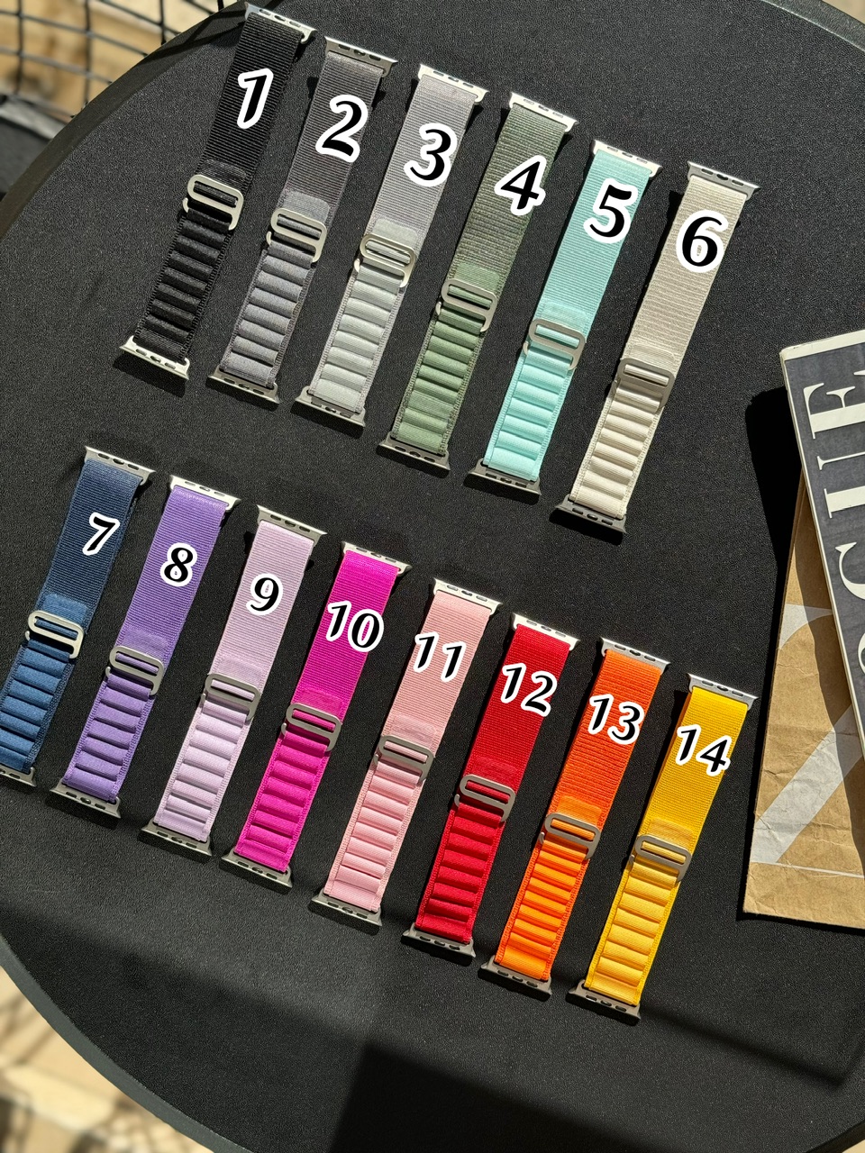 12-قرمز ,10-ارغوانی ,13-نارنجی ,11-صورتی ,1-مشکی ,9-یاسی ,8-بنفش ,7-سرمه ای ,6-شیری ,5-سبزآبی ,4-سبز ,3-طوسی روشن ,2-طوسی تیره ,14-زرد |